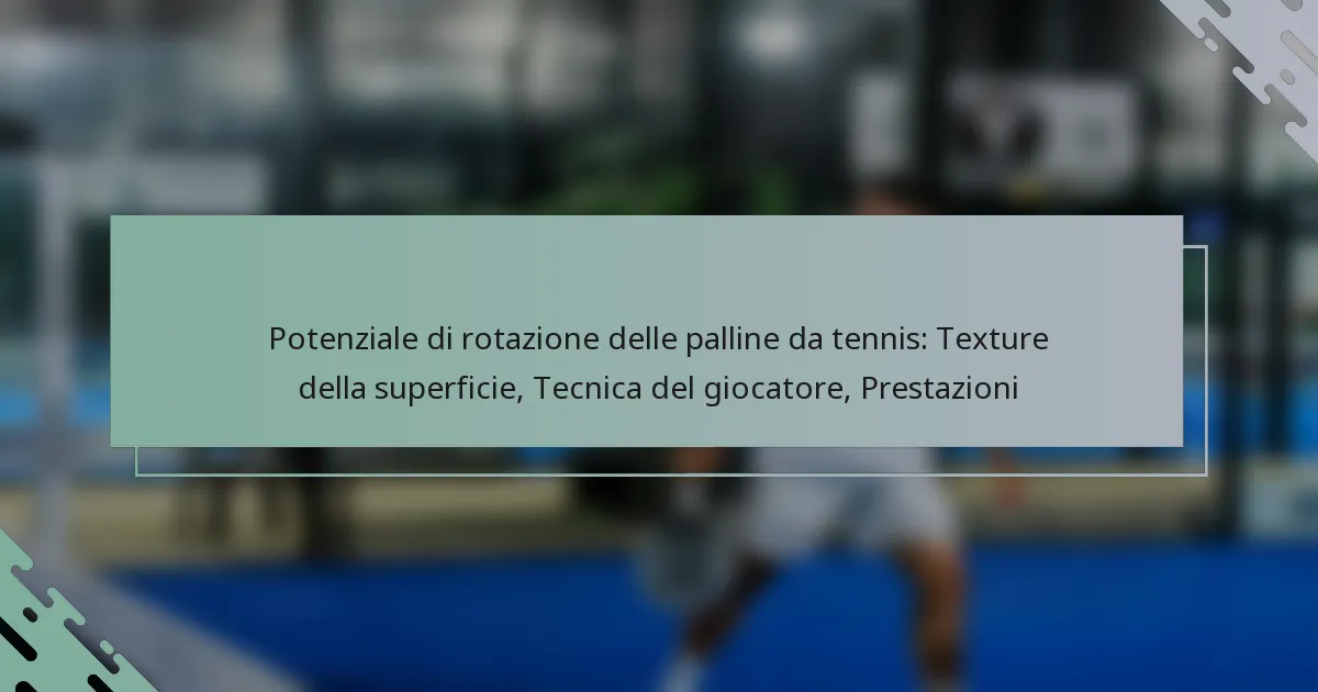 La texture della superficie delle palline da tennis influisce significativamente sul loro potenziale di rotazione, influenzando come i giocatori possono manipolare la pallina durante il gioco. Diverse texture possono migliorare o ridurre la presa tra la pallina e le corde della racchetta, impattando sulla quantità di rotazione generata durante i colpi.